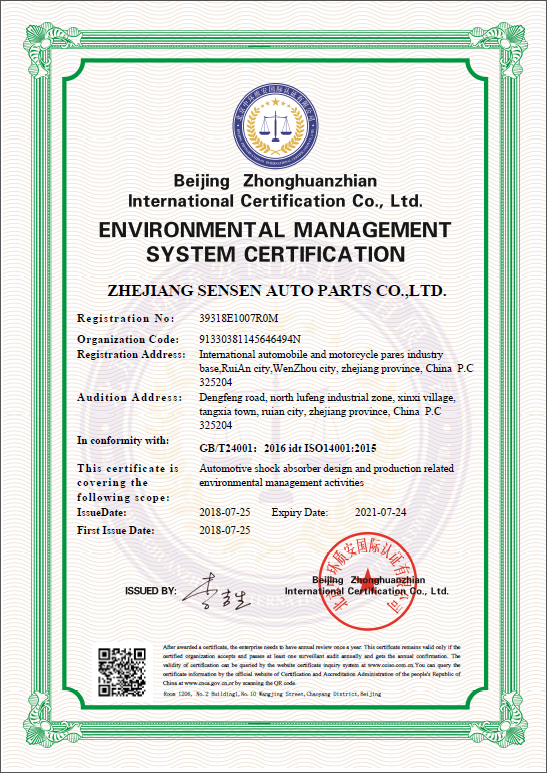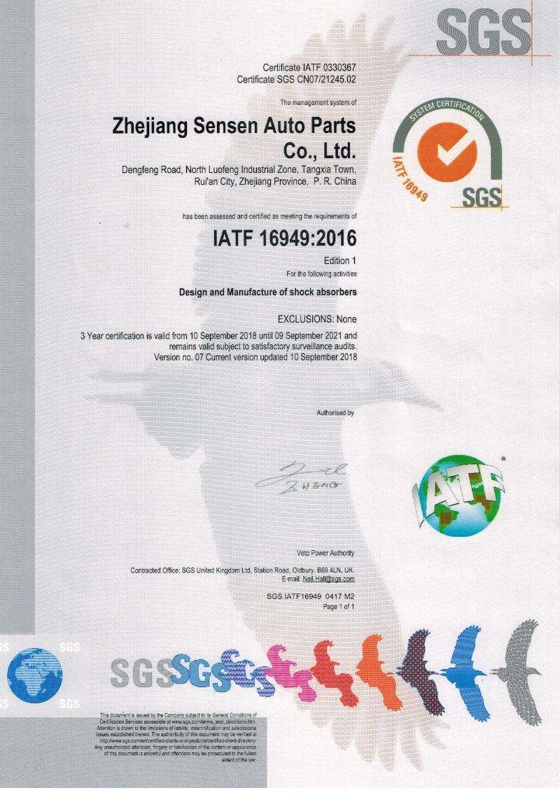 Zhejiang Sensen Auto Parts Co., Ltd. (China) was established in 1985. As a professional auto shock absorber manufacturer and exporter, Sensen has developed into a company integrating the research, production and sales of shock absorber with an annual production capacity of 7 million pieces, covering about 6000 different items. Sensen supplies for OEM and aftermarket. The quality system is certified by ISO9001:2000 system, and ISO/TS 16949:2002 system. Sensen's markets cover all over the world such as Europe, North America, South America, Asia, the Middle East, and Australia etc. Sensen is always ready to sincerely cooperate with both old and new friends and create brilliant business.
